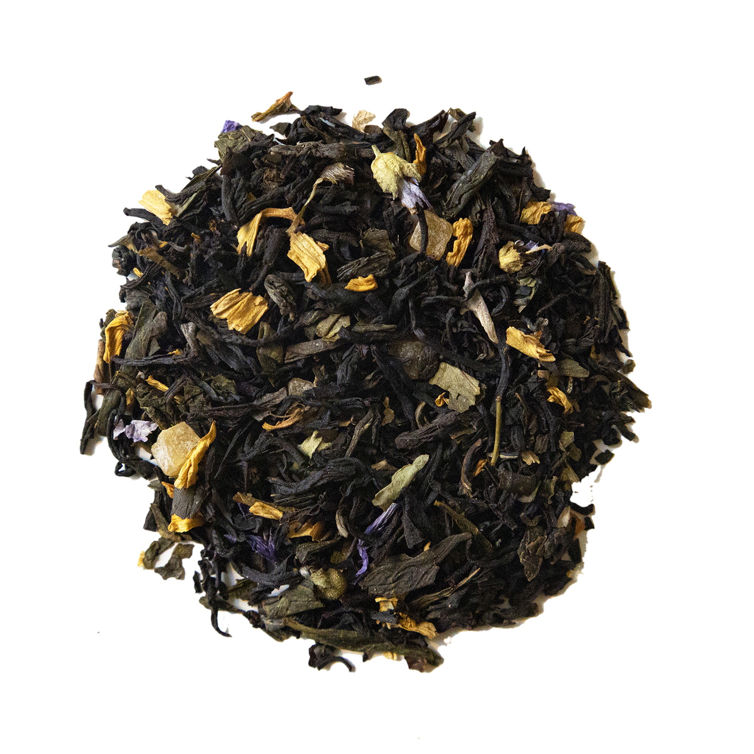Svart och grönt te smaksatt med krämig vanilj & ägglikör. Blandningen är vackert dekorerat med solmogen ananas, blå malva och solros.