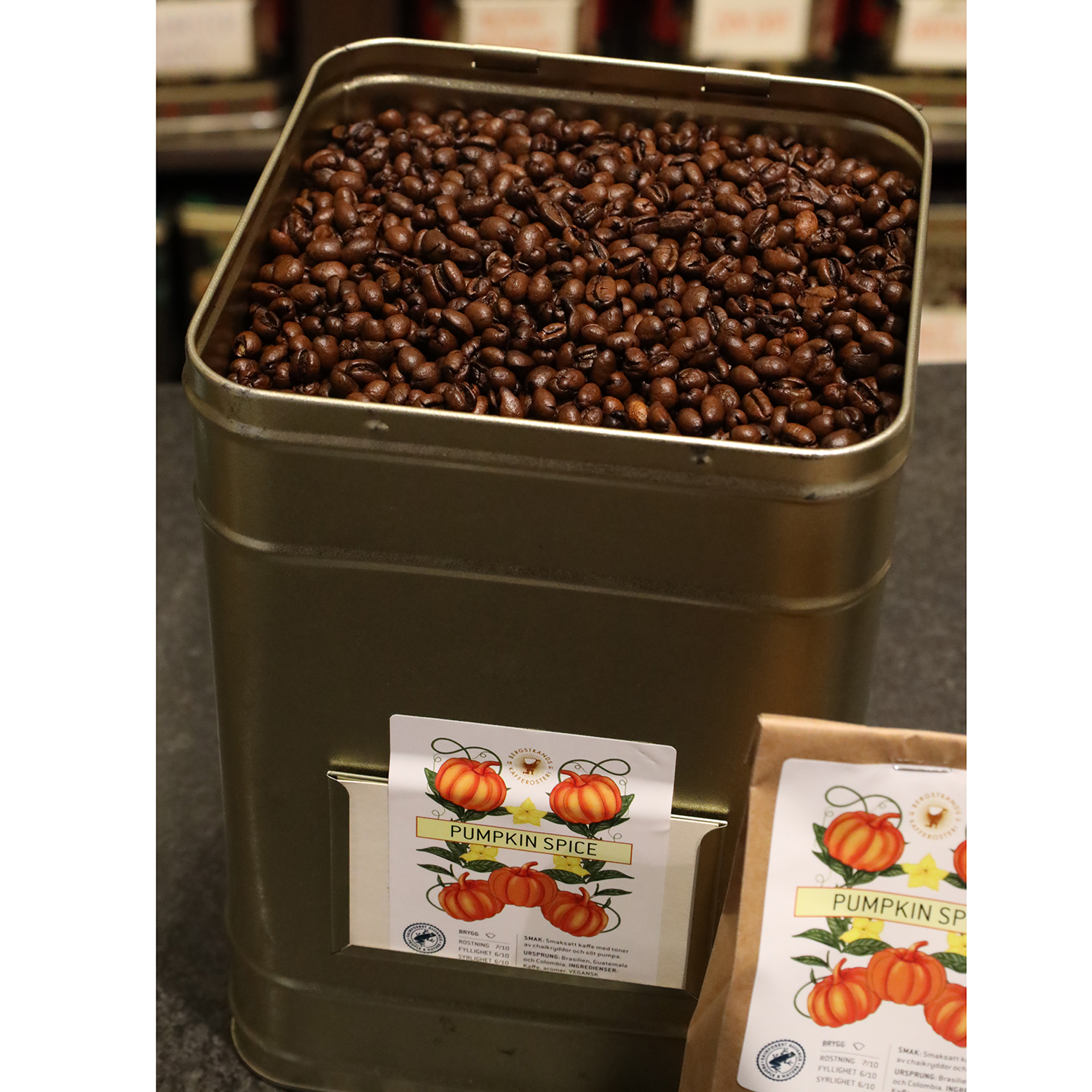 Smaksatt kaffe med mustiga chaikryddor och söt pumpa.
